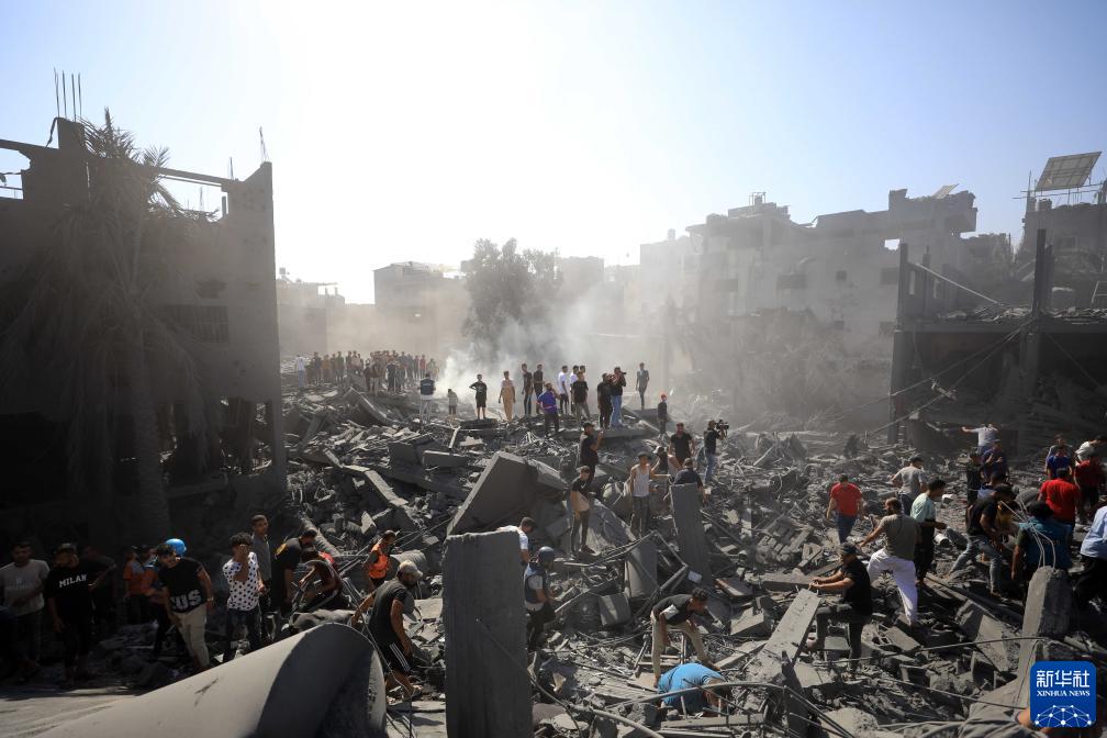 10月26日,人们在加沙地带南部城市汗尤尼斯的废墟中搜救。