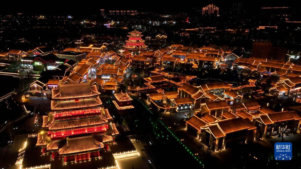 入夜时分,在河北省沧州市中心城区大运河畔,汇集美食、文创、民俗等多种元素的南川老街灯火辉煌。
