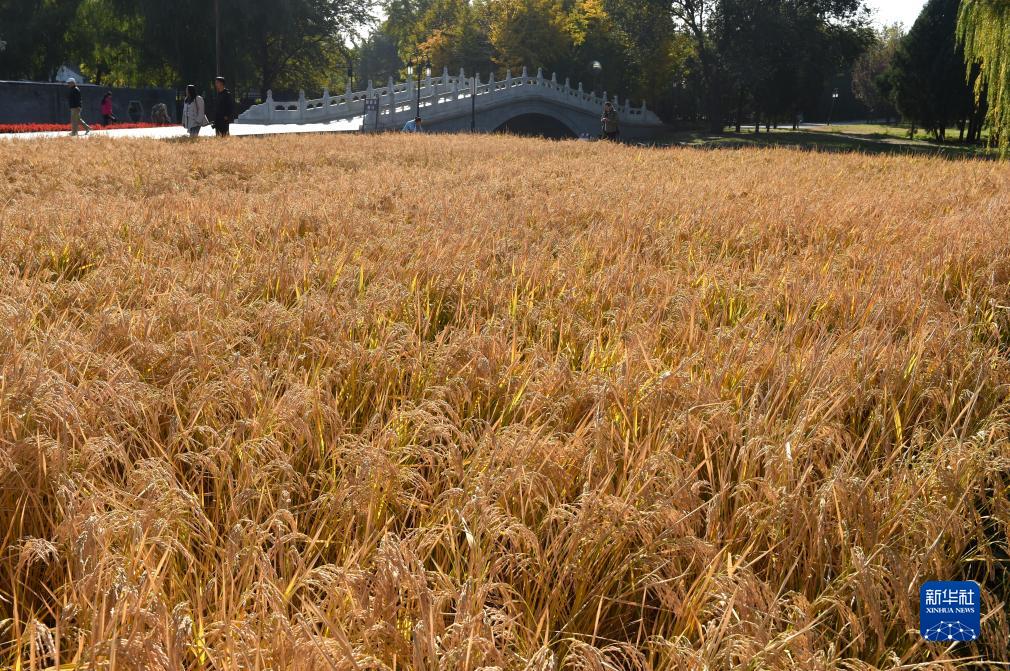 10月27日在圆明园“多稼如云”景区拍摄的即将收割的水稻。