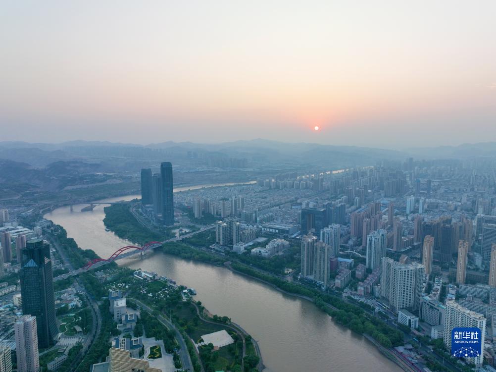2023年9月6日在甘肃省兰州市拍摄的黄河(无人机照片)。