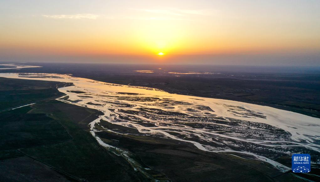 2023年9月15日,黄河从内蒙古巴彦淖尔市临河区双河镇流过(无人机照片)。