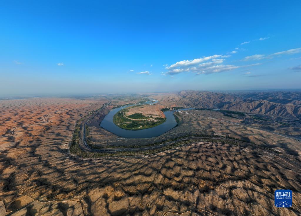 2023年9月6日在宁夏回族自治区中卫市拍摄的黄河(无人机照片)。