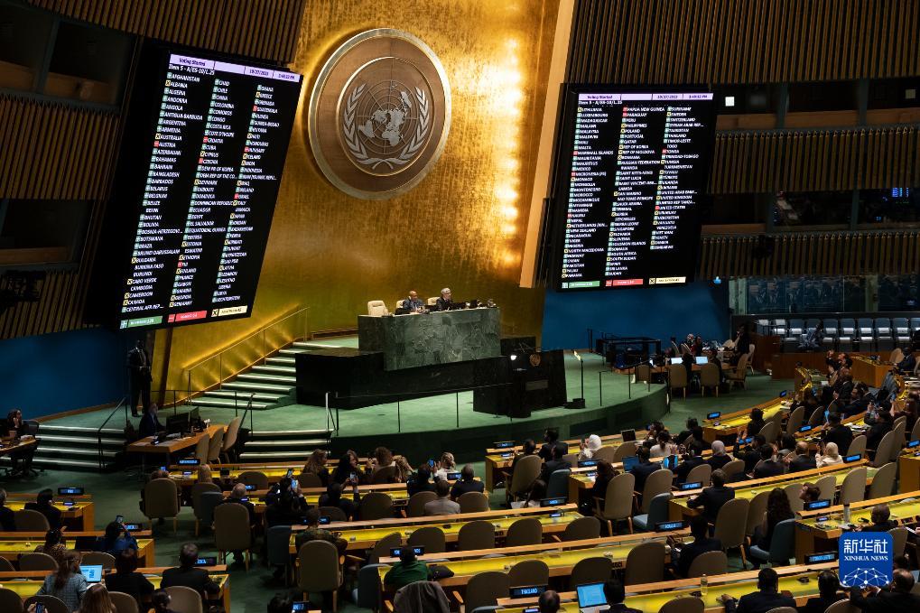 这是10月27日在位于纽约的联合国总部拍摄的联合国大会紧急特别会议表决现场。