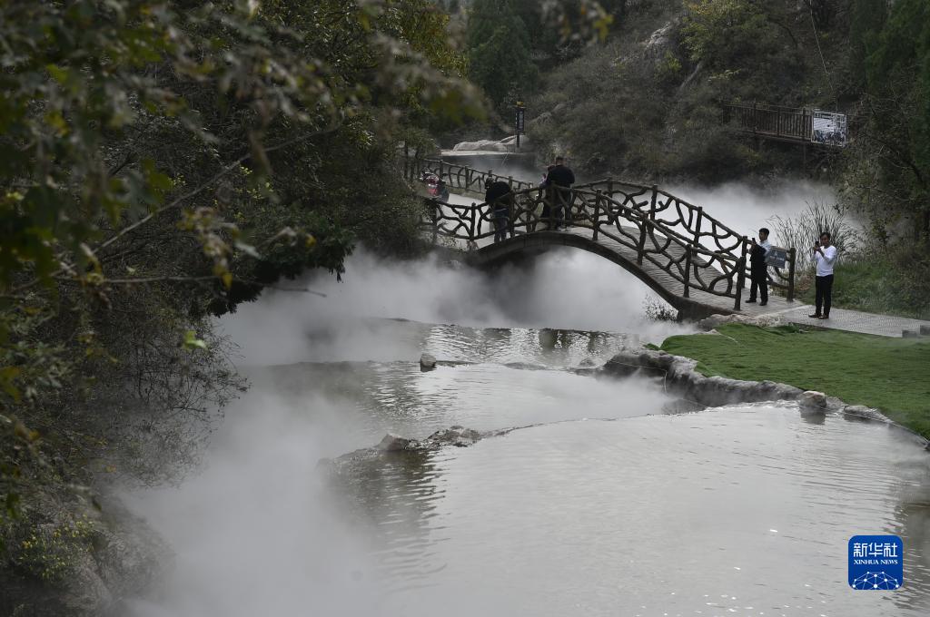 霜降节气过后,位于河南省禹州市鸠山镇的大鸿寨国家森林公园层林尽染,景色宜人,吸引游客前来登高观景、赏秋拍照。