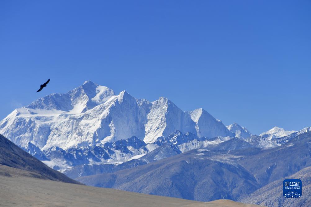 深秋,西藏日喀则市定日县天高气爽,游客前来观赏世界最高峰——珠穆朗玛峰。