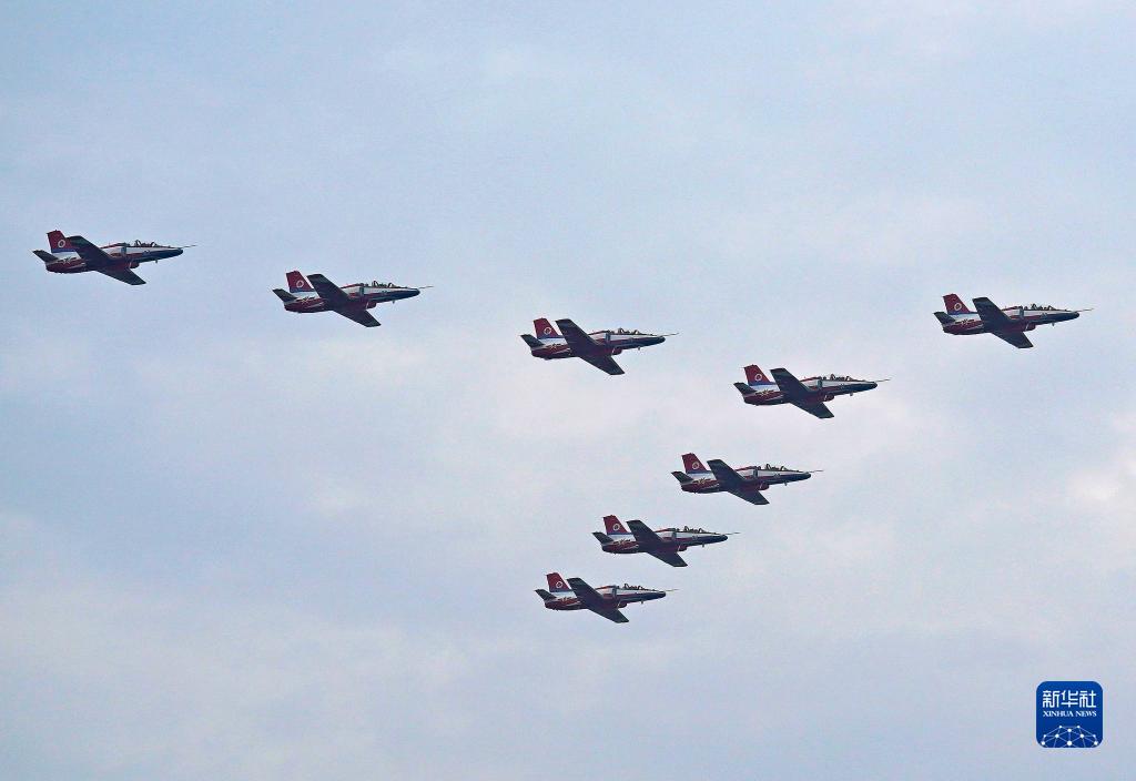 空军航空大学“红鹰”飞行表演队在进行飞行展示(10月27日摄)。