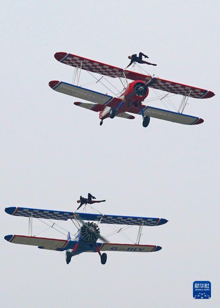 英国御风机翼行走特技飞行表演队在进行飞行特技展示(10月27日摄)。
