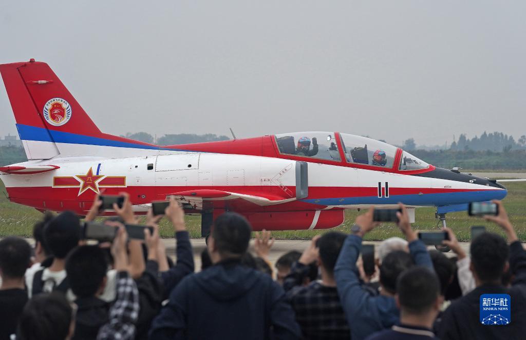 空军航空大学“红鹰”飞行表演队从观众面前驶过(10月27日摄)。
