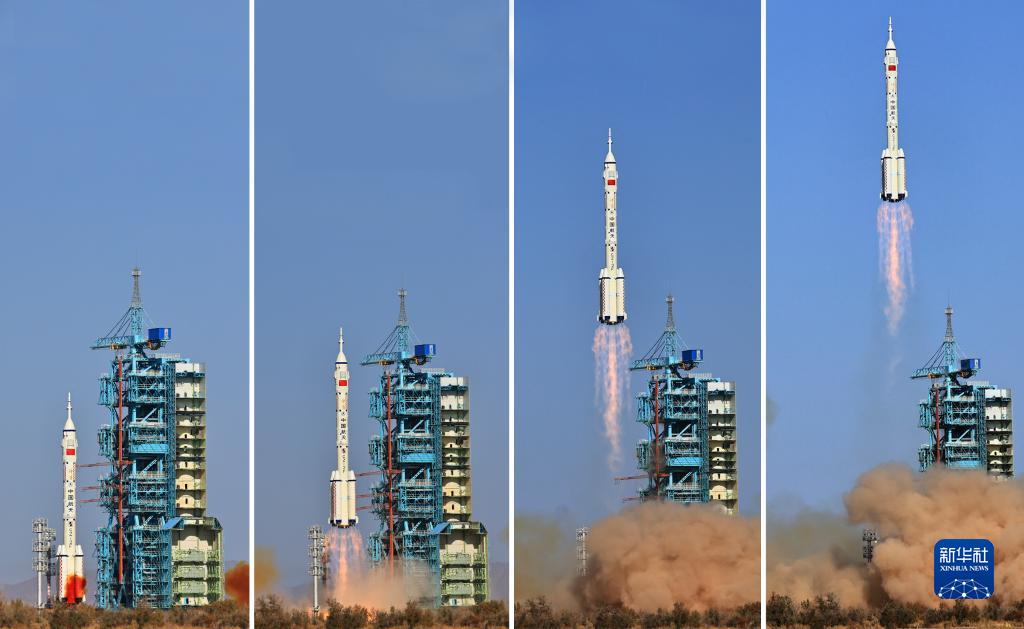 这是神舟十七号载人飞船发射升空过程(拼版照片,10月26日摄)。