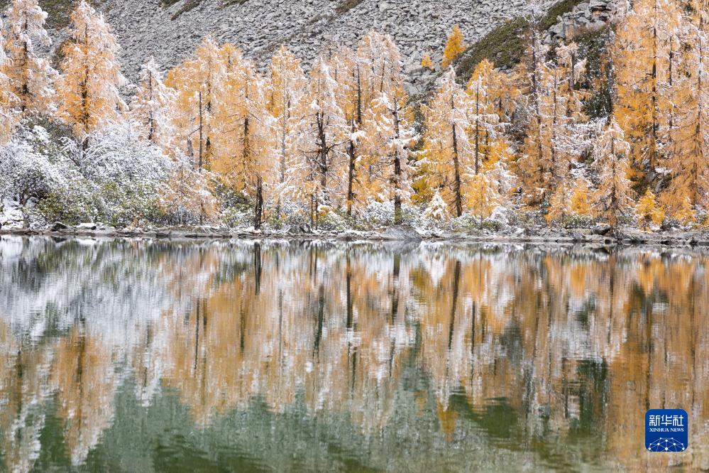 彩林倒映在党岭村葫芦海中(10月27日摄)。