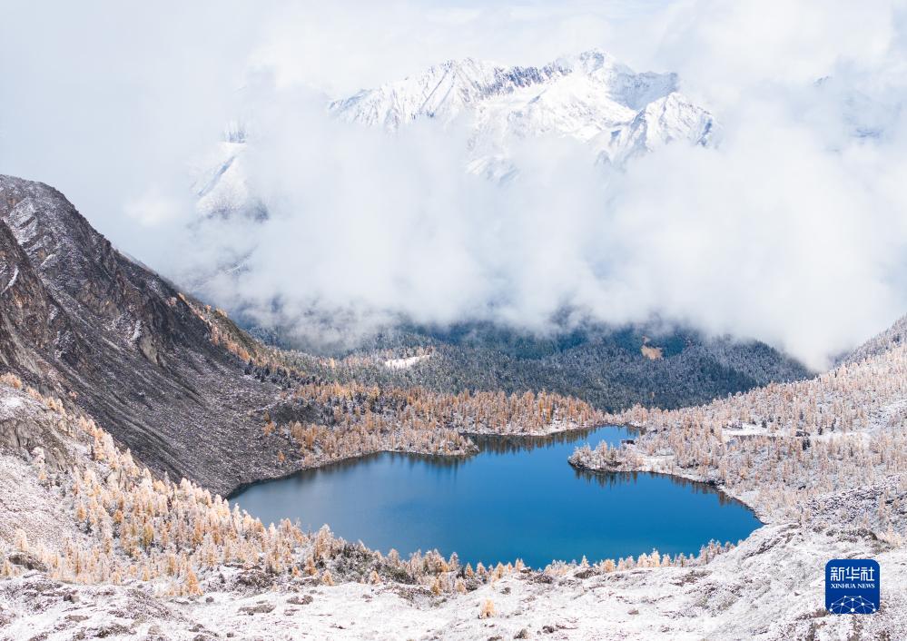 雪山、党岭村葫芦海、彩林构成一幅优美的画卷(10月27日摄,无人机照片)。