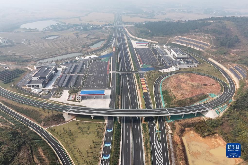 这是10月28日拍摄的无为至岳西高速公路庐江东互通(无人机照片)。
