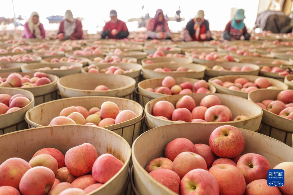 连日来,山东省荣成市各大苹果园里一派繁忙景象,果农们抓紧时间收获苹果,分拣、装运发往各地市场。