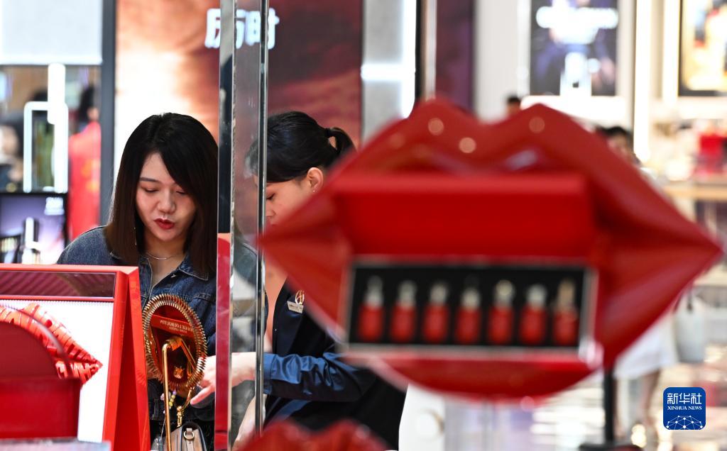 消费者在位于海南省海口市的海口国际免税城内购物(10月28日摄)。
