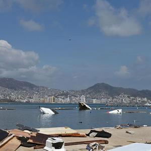 这是10月27日在墨西哥格雷罗州阿卡普尔科拍摄的被飓风“奥蒂斯”损坏的海滩。