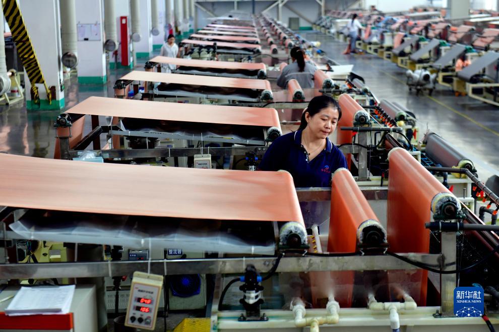 10月29日,在山东劲拓新材料科技有限公司,工作人员在导电布生产设备前值守。