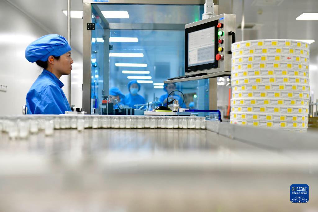 10月29日,在山东二叶制药有限公司,工作人员在药品生产线值守。