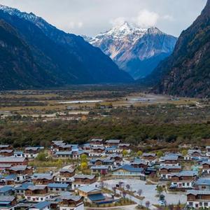 时值金秋,西藏林芝市秋色已浓,黄叶与初雪交织,流水并雪山辉映,景色如诗如画。