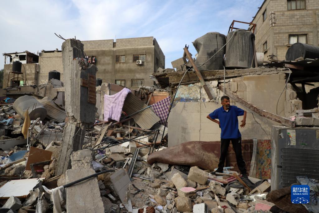 10月29日,在加沙地带南部城市汗尤尼斯,一名男子站在遭以色列袭击损毁的建筑中。