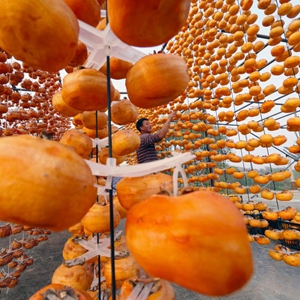 近日,河北省顺平县山区的磨盘柿子进入成熟期,果农们开始适时采摘、销售、加工柿饼,山前屋后呈现出一派丰收景象。地处太行山区的顺平县是河北省磨盘柿子主产区之一,目前该县柿子树种植面积达6万多亩,年产柿子7000多万公斤。