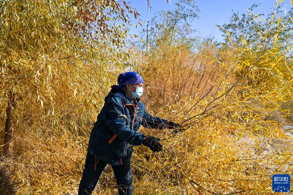 10月28日,德力格将修剪下来的树枝堆放起来。