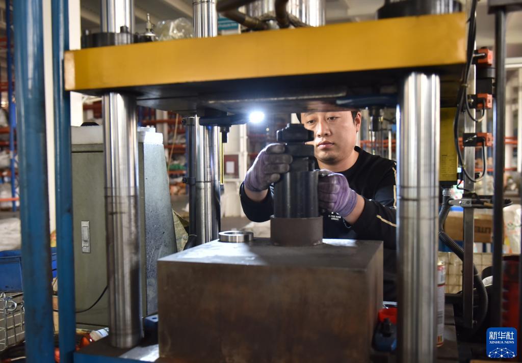 10月30日,威县一家汽车配件生产企业工人在生产线上加工发动机支架。