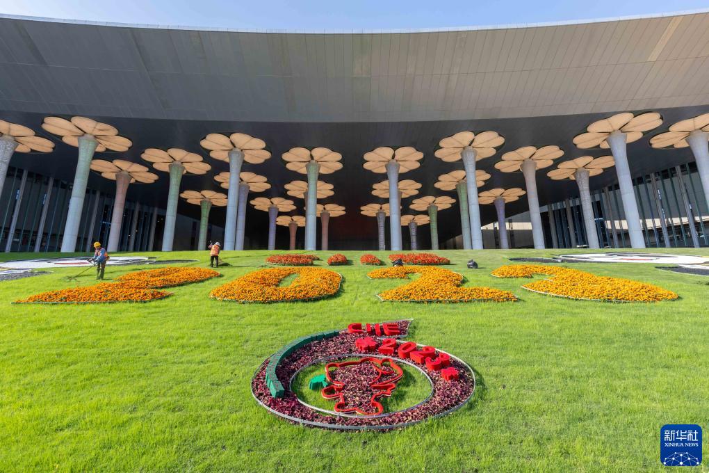 第六届中国国际进口博览会即将在上海举行,国家会展中心(上海)装点一新,迎接八方客商。