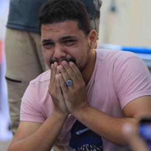 10月31日,在加沙地带中部城市代尔拜拉赫,人们在失去亲友后痛哭。