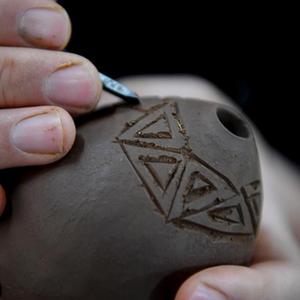 埙是中国古老的吹奏乐器之一,黄河泥埙取材自黄河胶泥,成品造型独特,音色浑厚悠长。