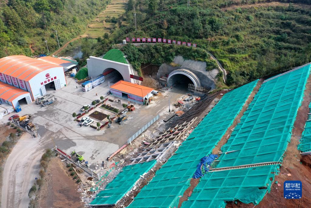 11月1日,正在紧张施工中的鸡冠山隧道(无人机照片)。