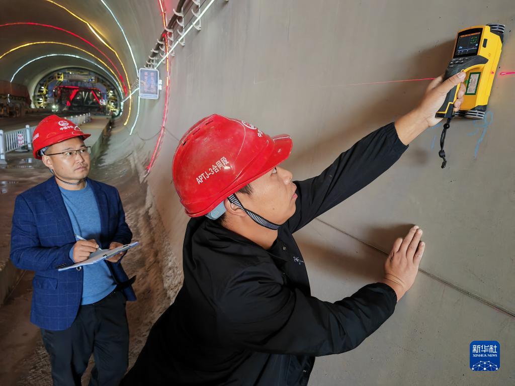 11月1日,工作人员正在鸡冠山隧道内检测隧道壁厚度。
