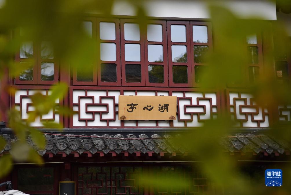 这是9月28日拍摄的德国汉堡豫园湖心亭。