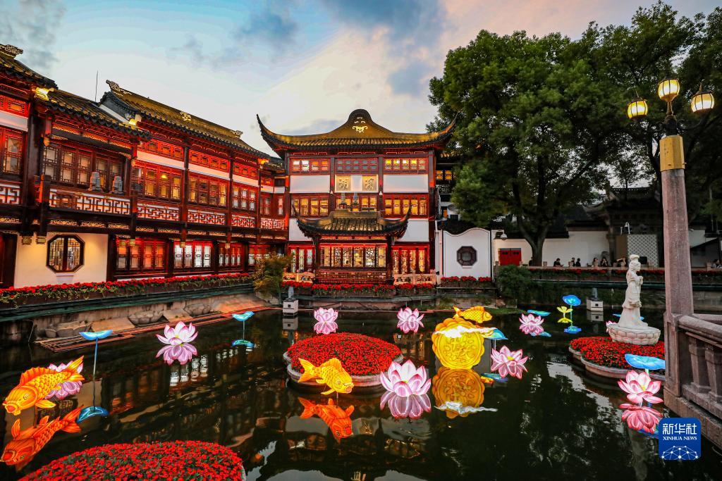 这是10月11日在上海豫园九曲桥上拍摄的景色。