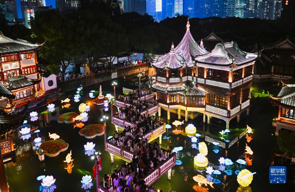 这是9月29日拍摄的上海豫园九曲桥夜景。