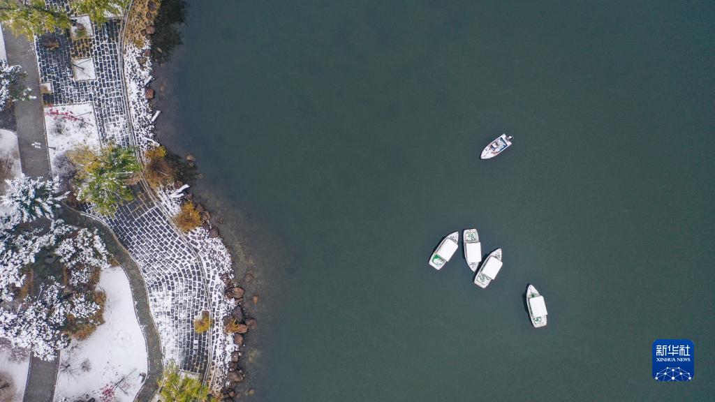 11月1日拍摄的长春市南湖公园雪景(无人机照片)。