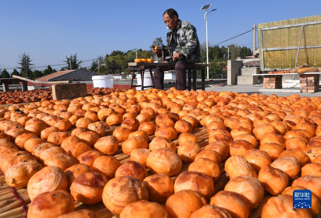 10月31日,河南省博爱县寨豁乡白坡村农民在晾晒柿子。