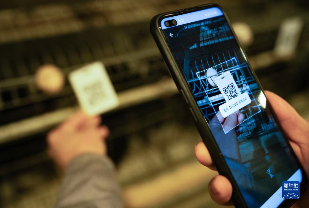 11月1日,一名工作人员在盐津县一家种鸡场扫码记录种鸡下蛋情况。