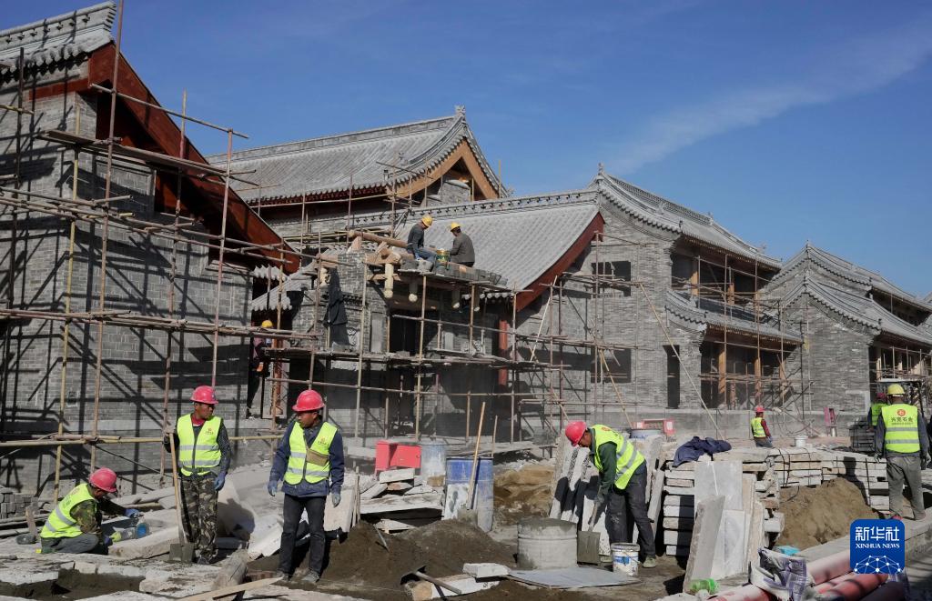 11月1日,工人在河北省张家口市万全右卫城长城国家文化公园文旅融合区项目建设工地施工。