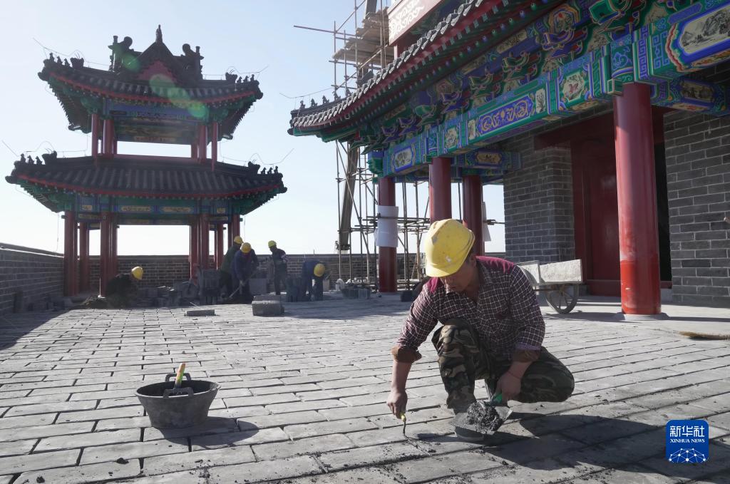 11月1日,工人在河北省张家口市万全右卫城长城国家文化公园文旅融合区项目建设工地施工。