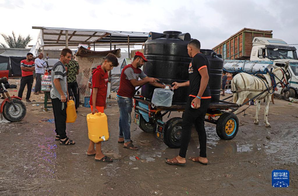 11月1日,流离失所的人们在加沙地带南部城市汗尤尼斯的一处临时难民营地取水。