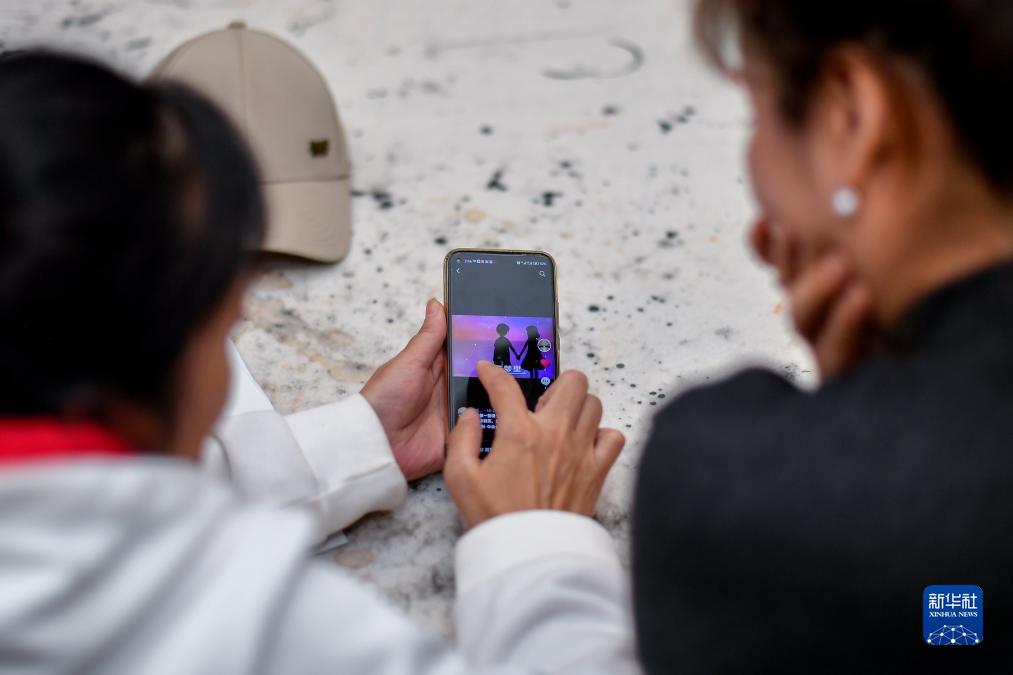 两位学员讨论研究一条视频的剪辑技巧(10月30日摄)。