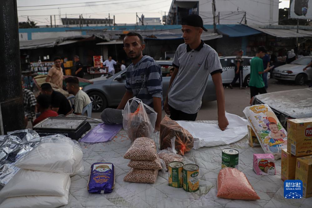 11月2日,人们站在加沙南部城市汗尤尼斯一处市场的货物前。