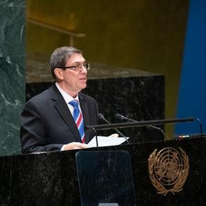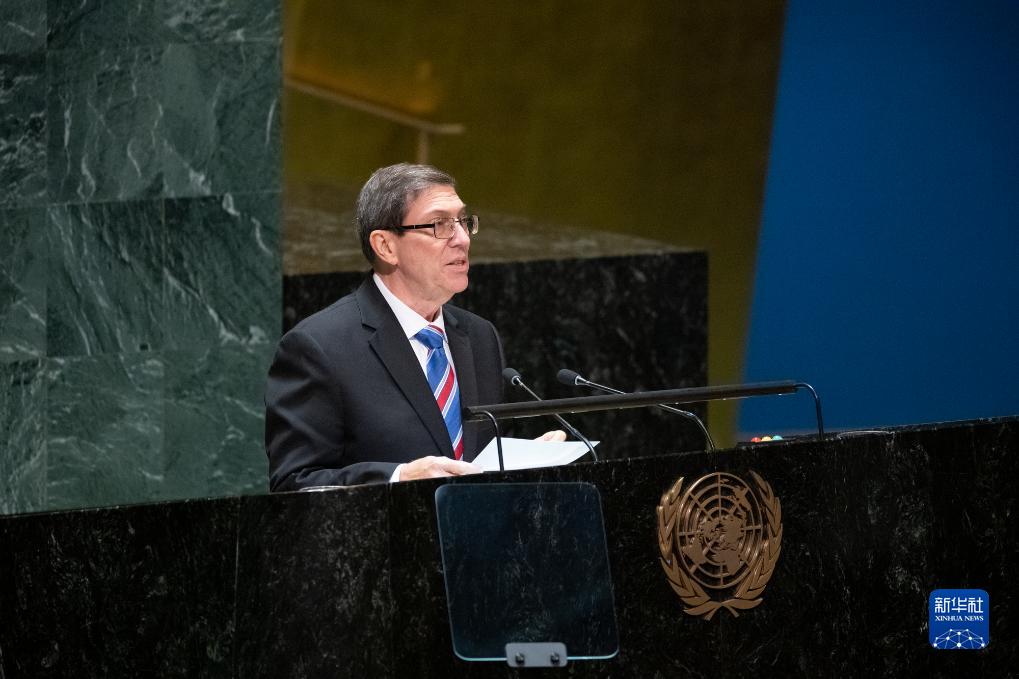11月2日,在位于纽约的联合国总部,古巴外交部长罗德里格斯在投票前发言。
