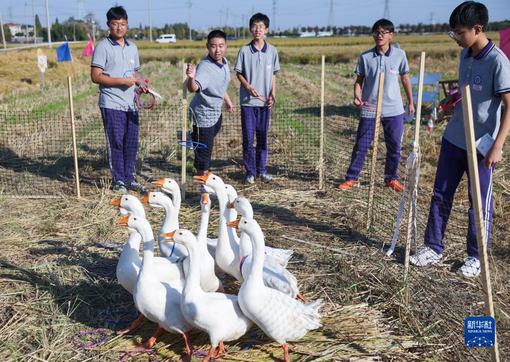 11月2日,浙江省杭州市余杭区径山镇前溪村举行丰收节活动,现场展示了当地特产、美食、文创产品等,游客还能体验南瓜保龄球、大鹅套圈、稻田拔河、割稻子等乡间农趣活动。近年来,前溪村依托万亩稻田发展智慧农业和乡村特色文旅产业,走出一条“风景引流、共同富裕”的振兴之路。