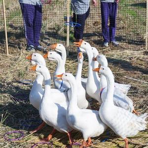 11月2日,孩子们在丰收市集里参加大鹅套圈趣味游戏。