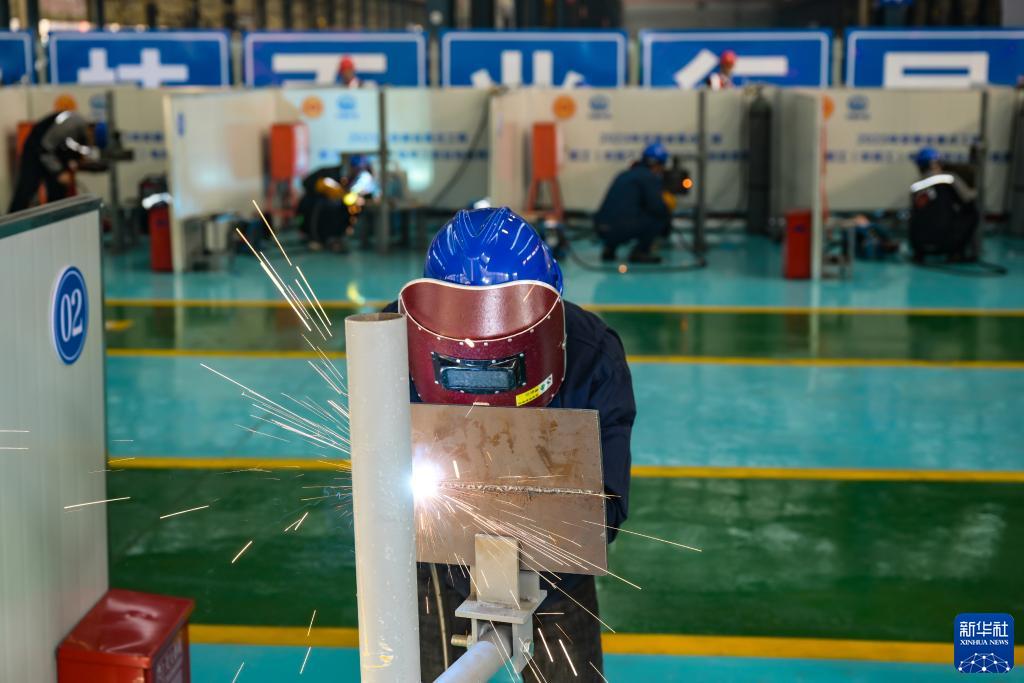 当日,2023年安徽省重点工程职工(农民工)电焊工职业技能竞赛在合肥举行,来自安徽省重点工程建设岗位上的40名青年焊接能手在比赛中各展绝活、比拼职业技能。