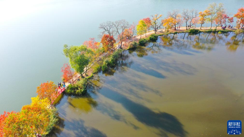 11月2日,游人在南京中山植物园观赏秋景(无人机照片)。
