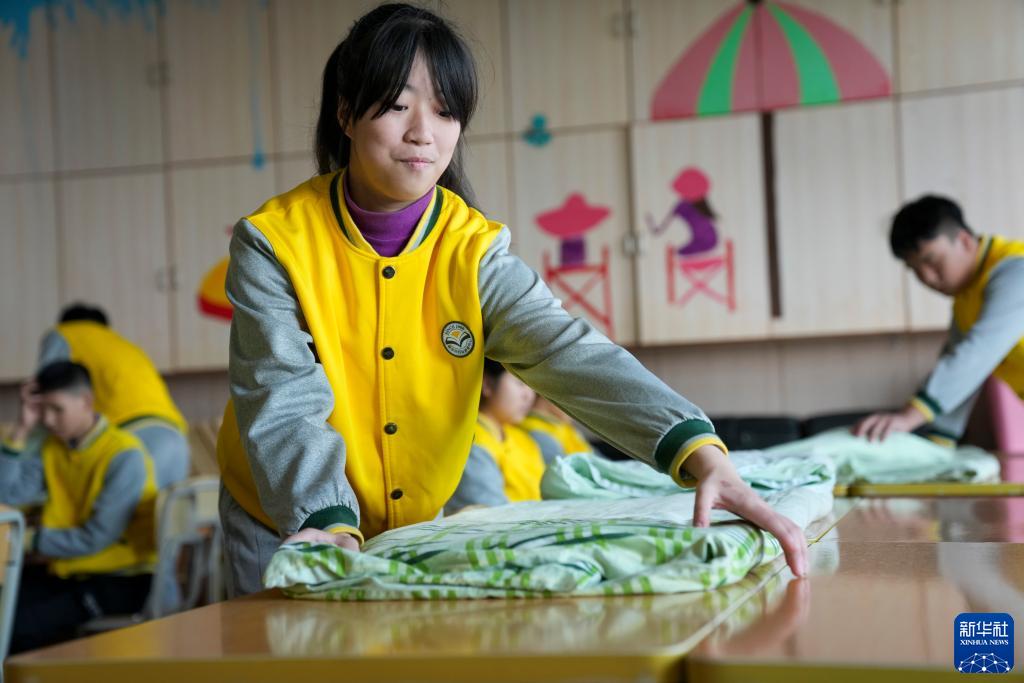 叠被子、系鞋带、煎鸡蛋……对重庆市特殊教育中心的视力障碍学生来说,基础生活技能是需要反复训练、长期学习的人生大事。