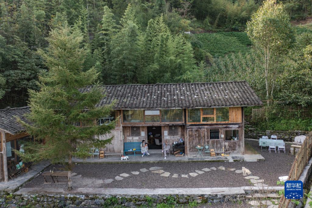 9月16日,在重庆市城口县北屏乡松柏村,文森一家三口在家中享受周末时光(无人机照片)。