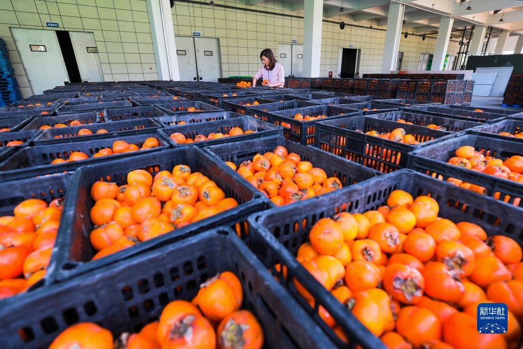 11月2日,在位于陕西省富平县的云集柿业富平柿园综合项目,云集柿业总经理王薇检查用于酿造柿子酒的原料。